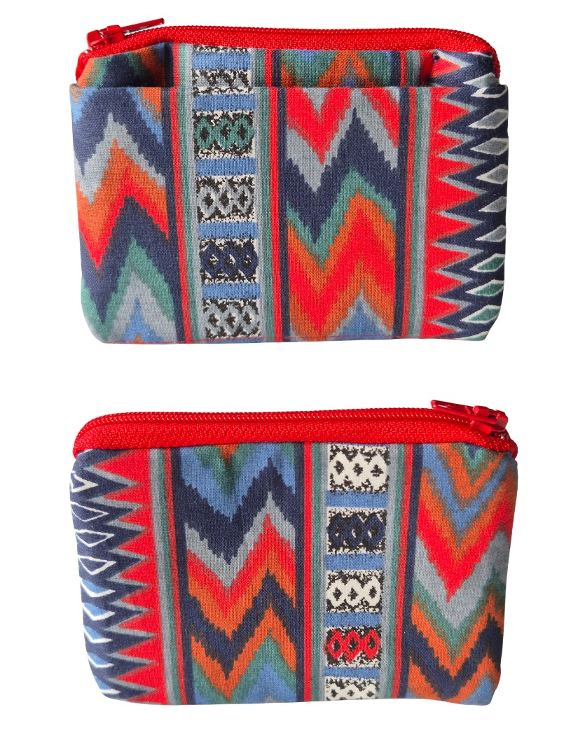 In het portemonneetje is ruimte voor papiergeld en munten. In het pasjesvak, passen meerdere pasjes. Dit portemonneetje is gevoerd met dezelfde stof als de buitenkant. De portemonnee sluit met een bijpassende, rode (nieuwe) rits.