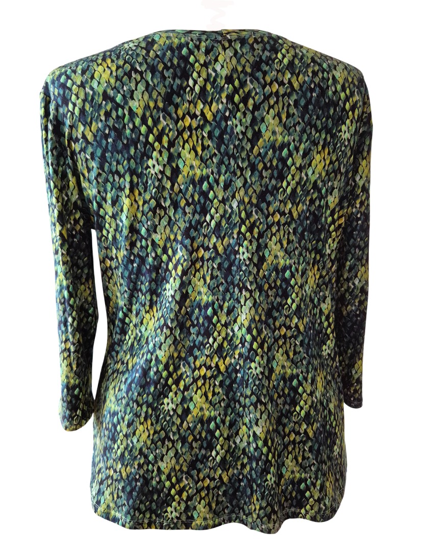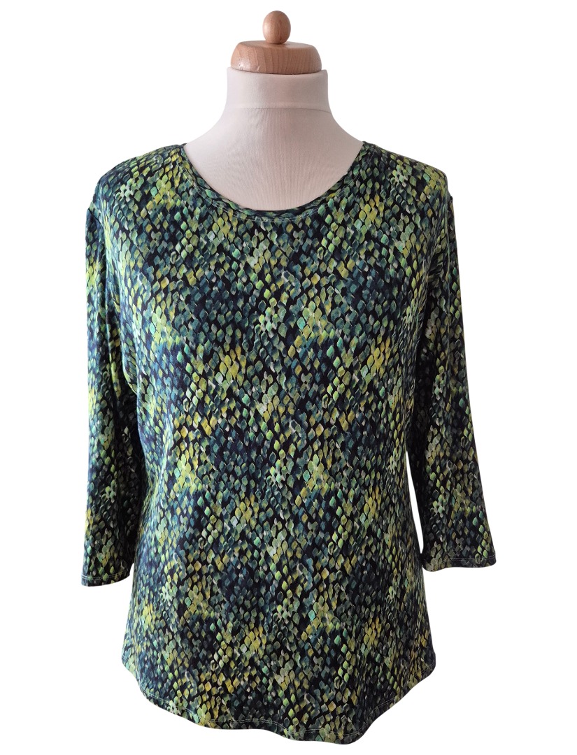 Het Green Drops2 shirt is gemaakt van een mooie kwaliteit stof (merk Geisha). Het shirt heeft prachtige groene tinten. De stof is gemaakt van 95% Viscose en 5% Elastan waardoor dit shirt zeer comfortabel draagt.