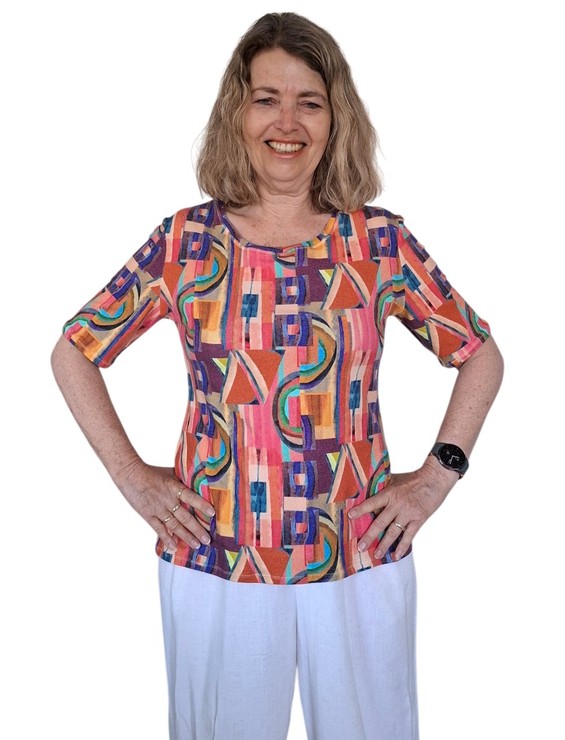 Dit Color Abstract shirt heeft abstracte motieven en veel verschillende kleuren. Dat is handig! U heeft al snel een effen broek of rok in huis, waar dit prachtige shirt op past!