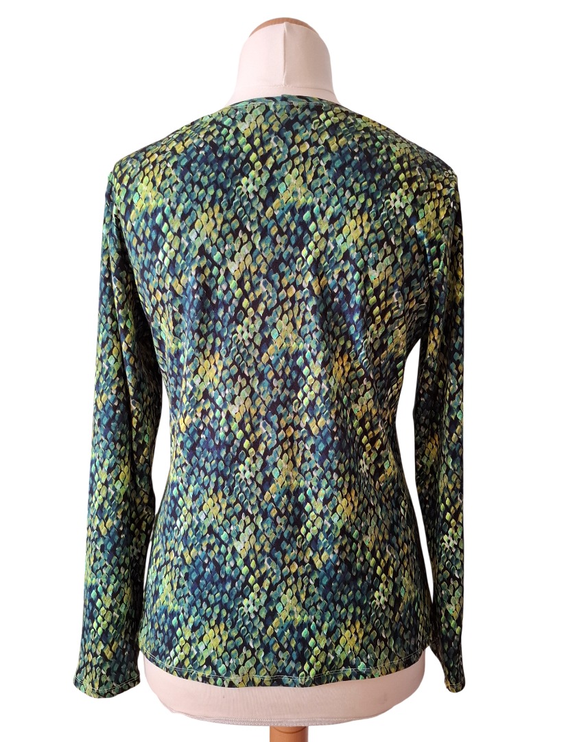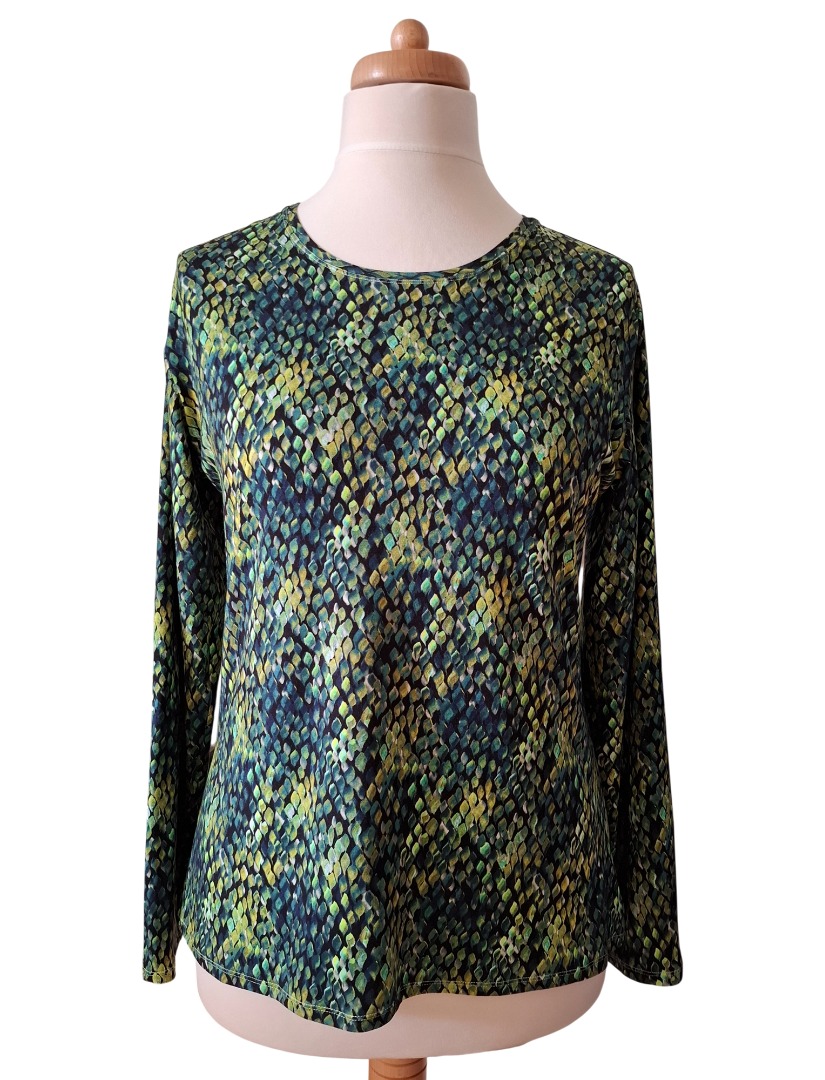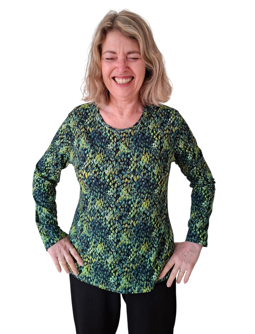 Het Green Drops shirt is gemaakt van een mooie kwaliteit stof (merk Geisha). Het shirt heeft prachtige groene tinten. De stof is gemaakt van 95% Viscose en 5% Elastan waardoor dit shirt zeer comfortabel draagt.