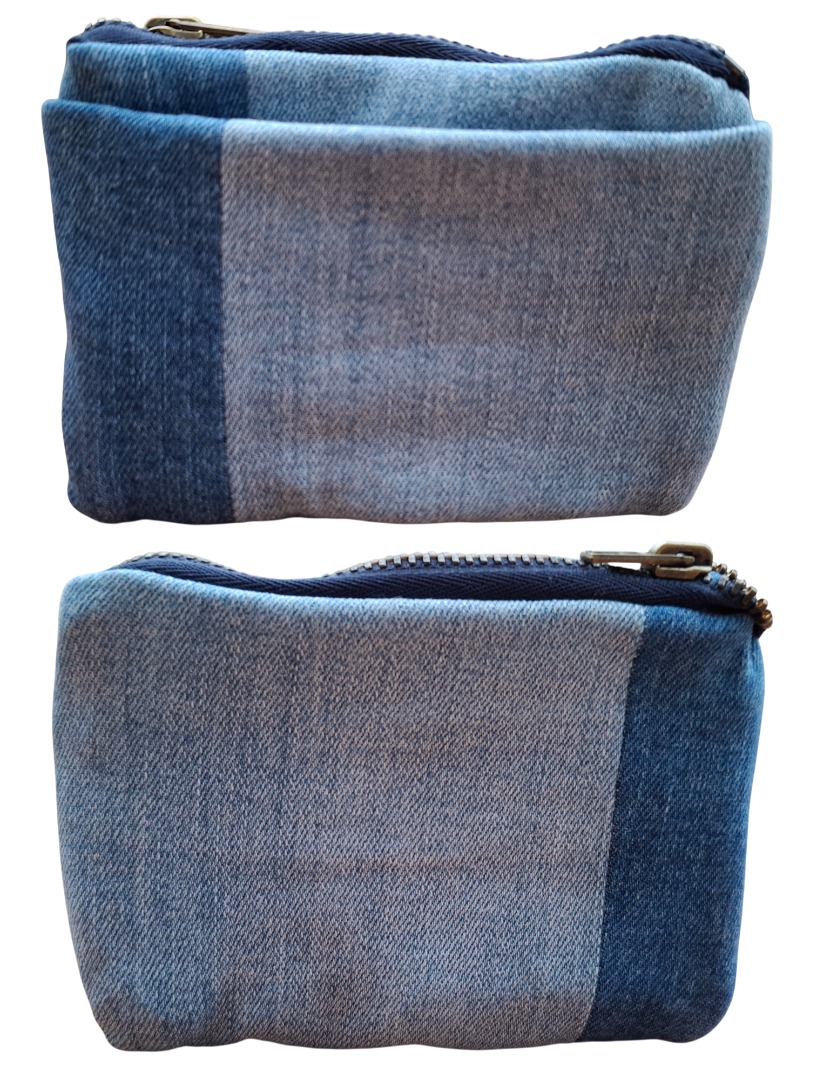 Dit leuke, handige en handgemaakte portemonneetje met pasjesvak is ongeveer 8 cm. hoog en 12 cm. breed. De portemonnee is van gedragen spijkerbroeken gemaakt (upcycling) met een zelfde voering. Ik heb gebruik gemaakt van verschillende tinten spijkerstof : licht- en donkerblauw.