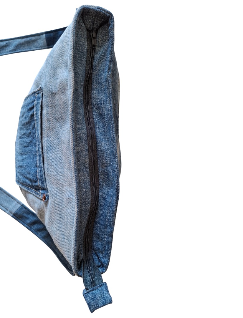 Een nieuwe handgemaakte, stoere, sterke Schoudertas B30 van gebruikte spijkerbroeken en restanten (nieuwe ) stof. Hergebruik dus! Iedere tas op mijn website is uniek. Elke tas is anders!