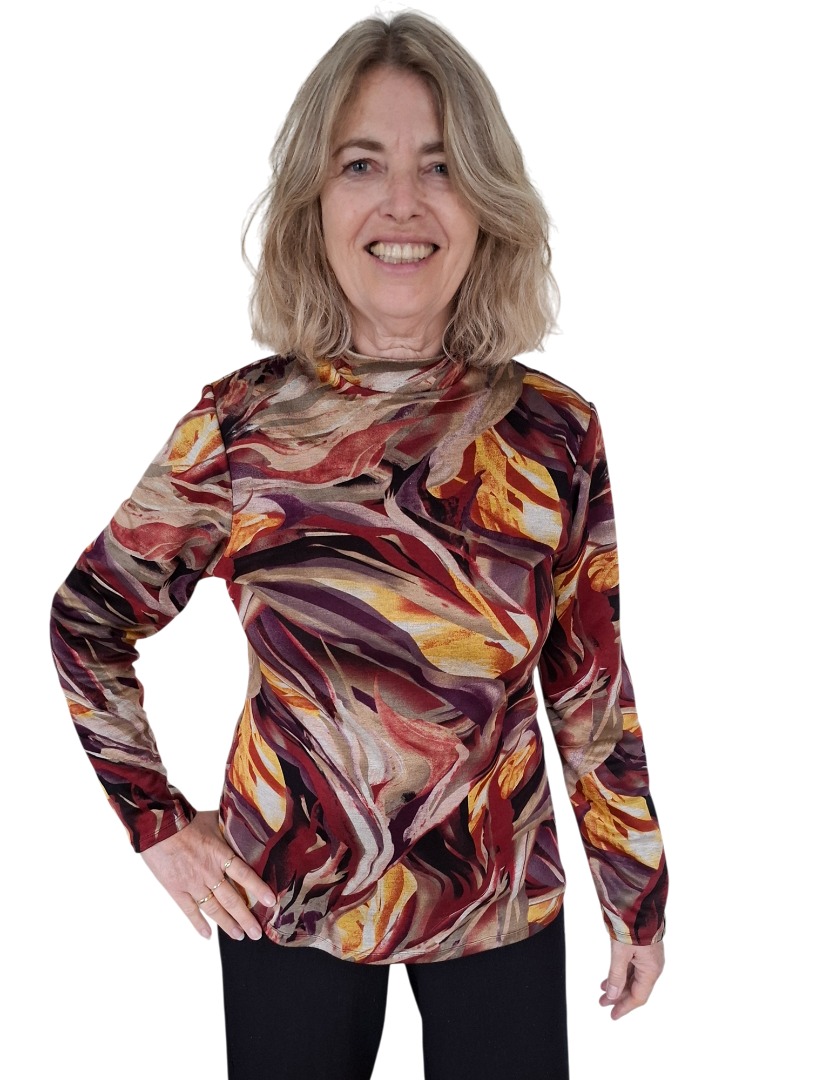 Deze Garlands Top heeft prachtige herfstkleuren! Als je deze Top draagt, word je gelijk vrolijk van de kleuren en het zacht aanvoelende materiaal.